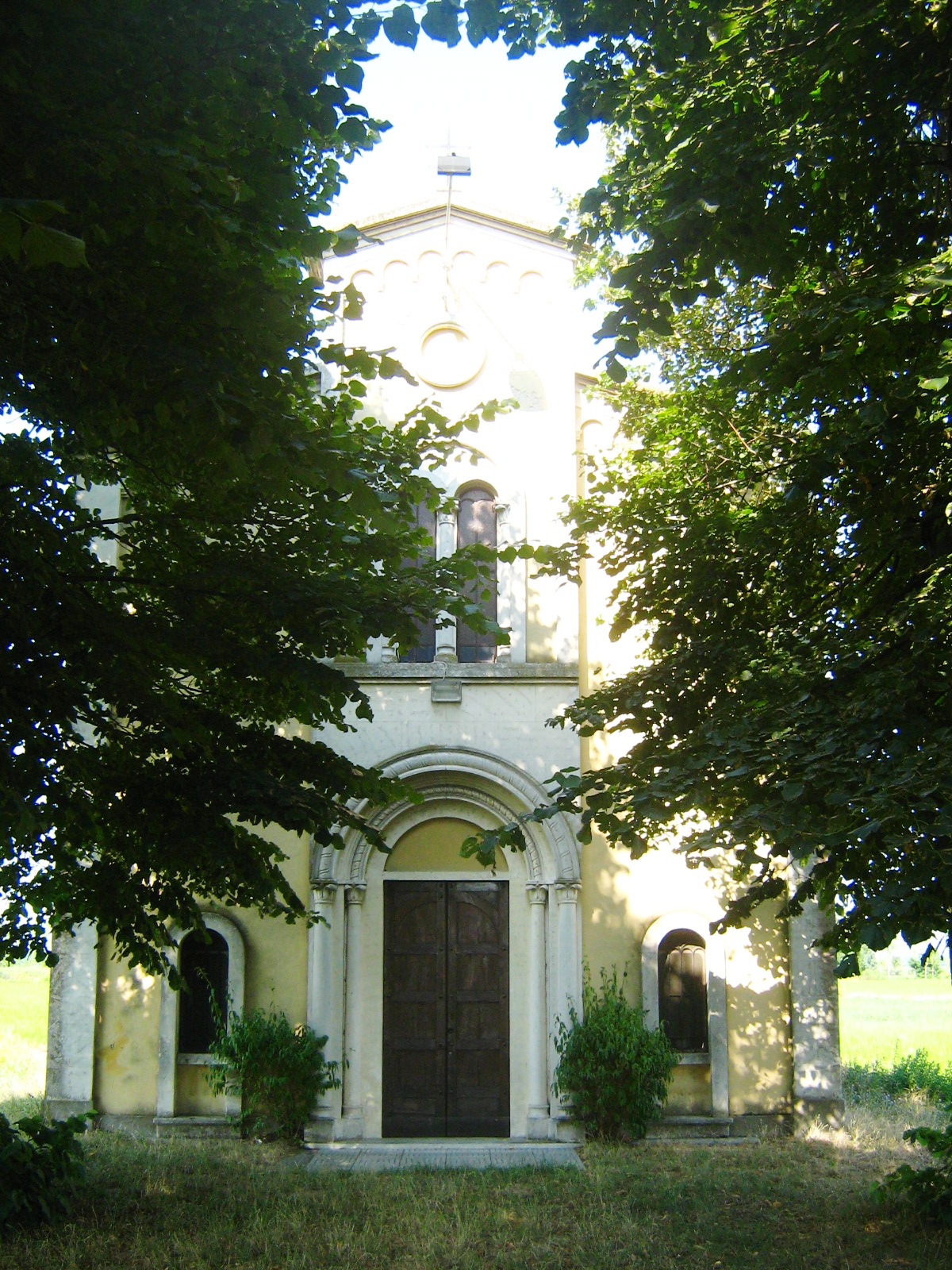 Allo stato attuale risulta ancora visibile solo una raffigurazione della Vergine con il Bambino fra San Giovanni Battista e Santo Stefano. La sua struttura originaria venne modificata nel secolo XVIII, realizzando un sopraelevamento delle pareti ed un rifacimento della facciata in forme neoromaniche. Il fronte, oggetto di interventi non remoti, presenta finitura ad intonaco, già segnata da fenomeni di umidità ed efflorescenze legate all'umitità. I fronti perimetrali, con struttura muraria a vista, versano in condizioni ancor più critiche, con preoccupanti fenomeni di perdita di materiale, a partire dall'erosione dei giunti di legante. Necessaria una verifica strutturale anche della stabilità del bene.